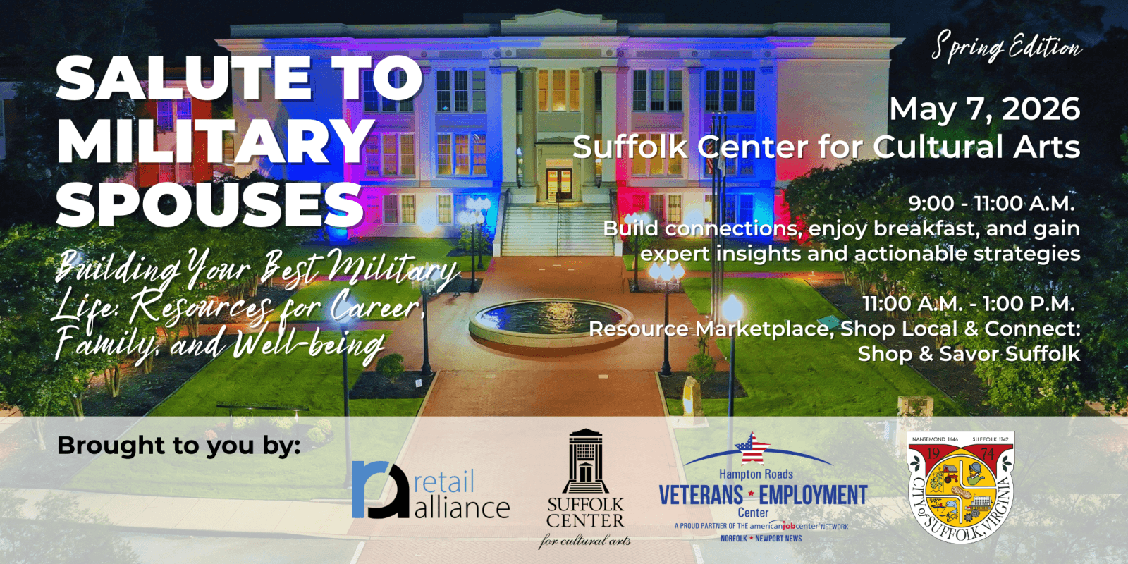 Shop & Savor Suffolk is a half‑day experience designed to celebrate military spouses while strengthening connections between the military community and Suffolk’s vibrant small‑business scene.